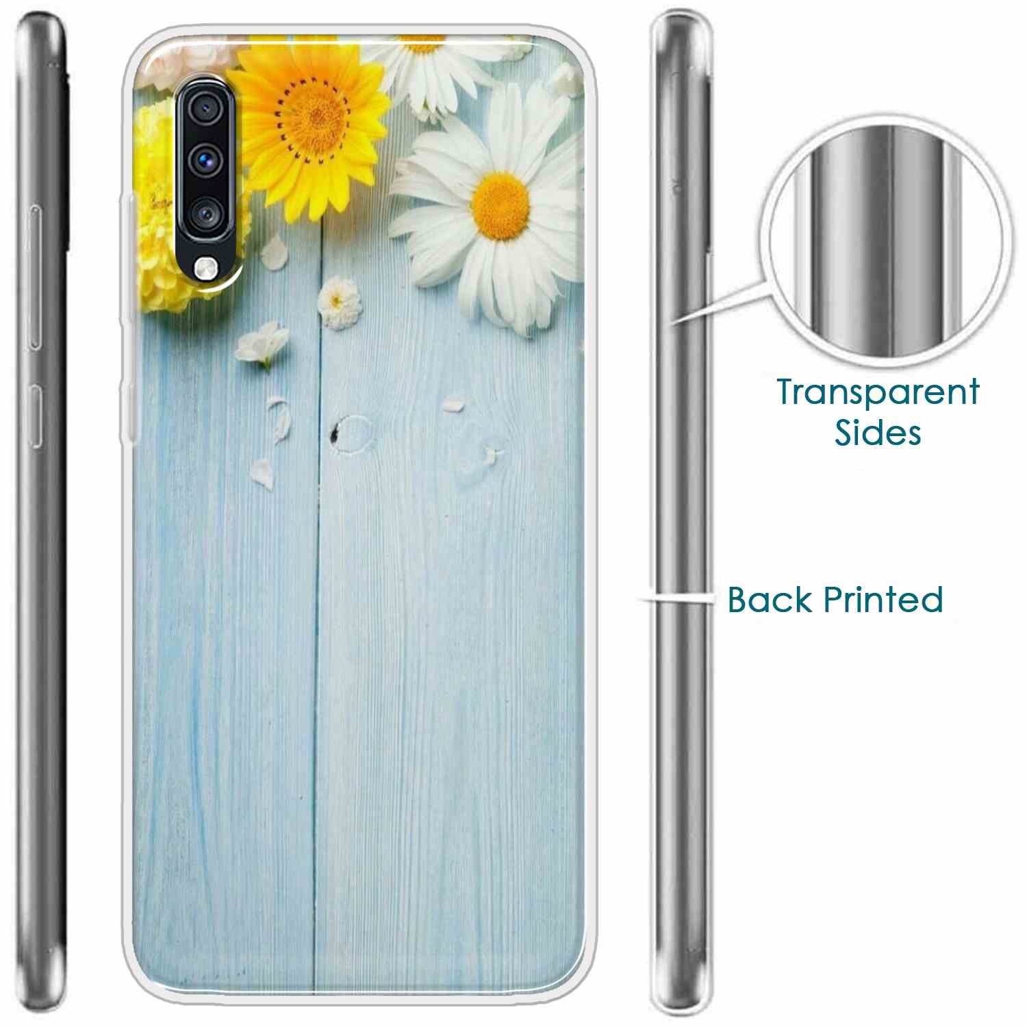 Flowers on Blue Back Case For Samsung Galaxy A70