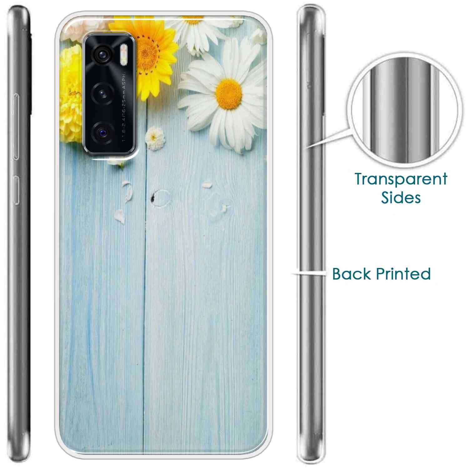 Flowers on Blue Back Case For Vivo V20