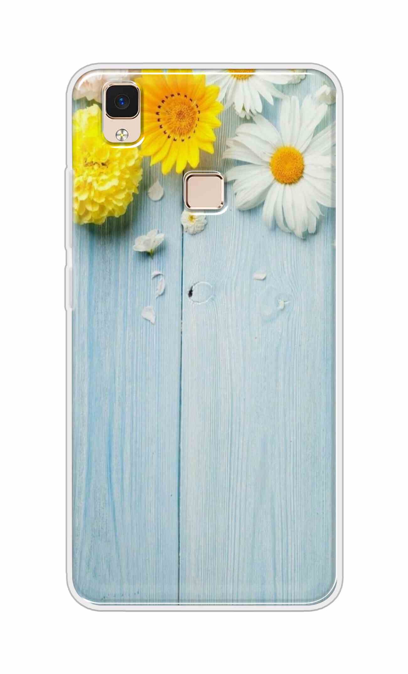 Flowers on Blue Back Case For Vivo V3