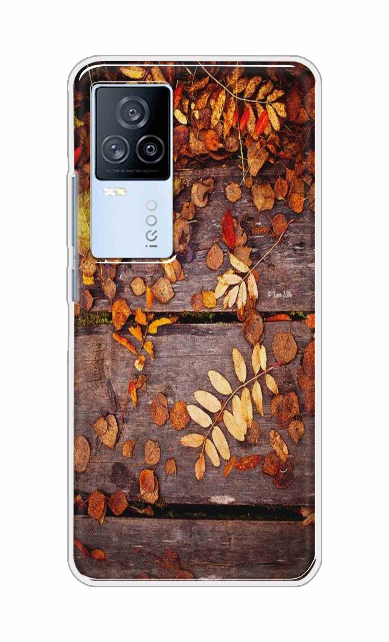 Home Mobile Cover Vivo iQOO 7 Soft Cover Leaves on Wood Back Case For iQOO 7